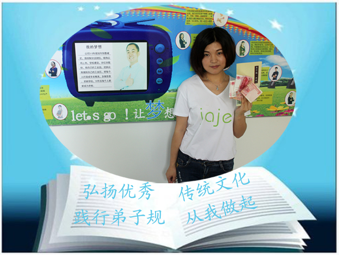 劉總曾說《弟子規(guī)》影響他很多,希望公司的嘉人們都能學(xué)習(xí)弟子規(guī),特要求在每周的二、四、六早會中,都要帶領(lǐng)著所有同事一起朗誦弟子規(guī),大家在劉總的帶領(lǐng)下,有了很高的學(xué)習(xí)熱情。為了激勵大家主動去學(xué)《弟子規(guī)》,公司用現(xiàn)金獎勵的方式作為活動的開展,進行《弟子規(guī)》背誦比賽,第一位背出《弟子規(guī)》的獎勵五百,第二位獎勵三百,后面十位則獎勵200元。獎金激勵不是目的,是得讓嘉人們自覺以《弟子規(guī)》來規(guī)范自己的行為,懂得尊重。為了能更加深入的了解,去領(lǐng)會其意思。公司每月安排了兩位同事去參加幸福人生講座,直到所有嘉人都學(xué)習(xí)完。在五天四夜的課程中深入的學(xué)習(xí)弟子規(guī)、學(xué)習(xí)中國的傳統(tǒng)文化。