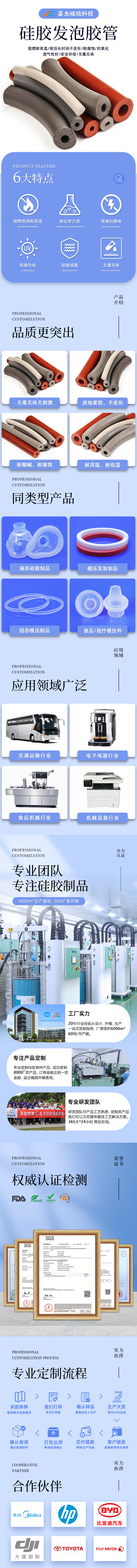 ![]() 食品級硅膠發(fā)泡管: 因形似海綿,又可稱為硅膠海綿管,具有高彈性,可制作多種顏色,耐高溫,且能在200℃環(huán)境下持續(xù)工作。 食品級硅膠發(fā)泡管性能:1.低密度均勻發(fā)泡,回彈性強(qiáng),耐壓縮,永不變形; 2.耐熱,耐老化,耐候性強(qiáng),具有生理惰性,性質(zhì)穩(wěn)定; 3.無毒無副作用,無異味,環(huán)保安全。 食品級硅膠發(fā)泡管用途: 耐高溫硅膠發(fā)泡管廣泛用于汽車行業(yè),電子器械,化工行業(yè)、船舶、機(jī)械設(shè)備、醫(yī)療設(shè)備等以及日常生活均有應(yīng)用。 食品級硅膠發(fā)泡條參數(shù):