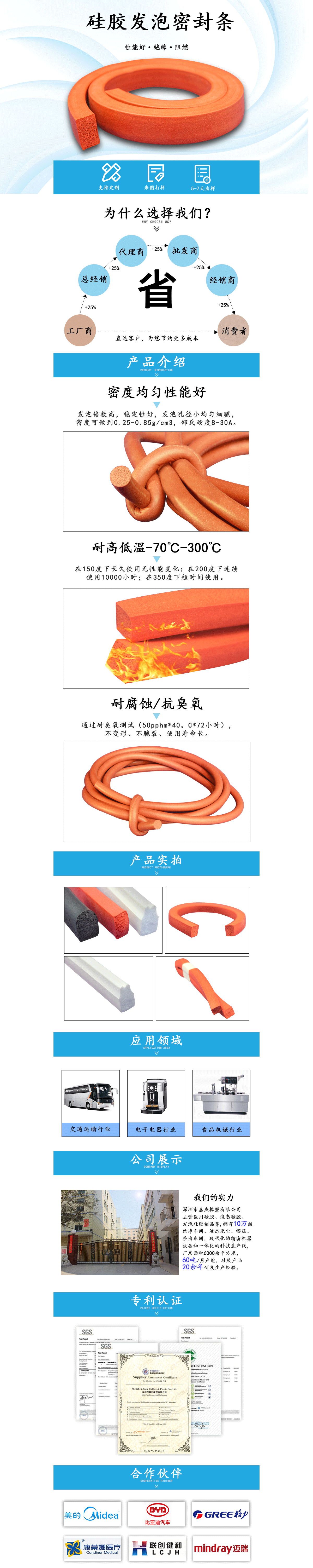 ![]() 長方形硅膠發(fā)泡密封條: 硅膠發(fā)泡條是用獨特配方工藝生產(chǎn)的保溫管,耐高溫250度,耐低溫零下50度,具有很好的隔音阻熱效果,是理想的密封隔熱材料,質(zhì)地為海綿體較柔軟,密度高,表面結(jié)皮光滑,耐老化使用壽命長。 長方形硅膠發(fā)泡密封條性能:1.輕便、強韌性輕便并且具有較強的韌性; 2.隔熱性導(dǎo)熱性低,具有優(yōu)越的保溫性; 3.非吸水性具有獨立氣泡結(jié)構(gòu),吸水性很低; 4.緩沖性抗沖性能極佳,可用作緩沖材料; 5.耐候性耐候性極佳。 長方形硅膠發(fā)泡密封條用途: 長方形硅膠發(fā)泡密封條主要用于配套電器、電子、家具設(shè)備、玩具、五金、醫(yī)療設(shè)備、體育用品、音響、燈飾、機械、汽車、瓶罐密封、建筑幕墻密封等行業(yè)。 |